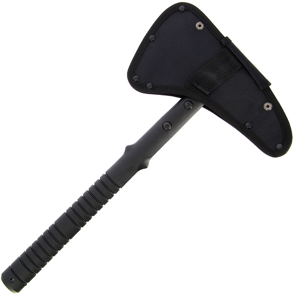 On the opposite to the axe blade, you’ll find a large spike. Most useful for spiking into a cut log and dragging it along behind use. Most useful for building fires or camp shelters.
