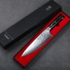 This Gyutou deluxe Chef’s kitchen knife is hand made by Turwho from high grade Japanese VG-10 Damascus Steel, this is a professional kitchen knife. The blade is about as sharp as possible, a joy to prep food with, effortless cutting. The blades beautiful Damascus steel pattern is created by folding the steel over and over again, this knife has 67 layers of alternating steel. Turwho’s Gyutou (Chef’s Knife) is a versatile kitchen knife. It can be used for cutting meat, fish and vegetables, making it suitable for preparing Western cuisine.