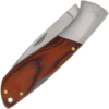 This stylish folding pocket knife delivers everyday utility in an elegantly simple design. It features a satin drop point blade, sturdy back lock mechanism, and contoured red/orange Pakkawood handle.